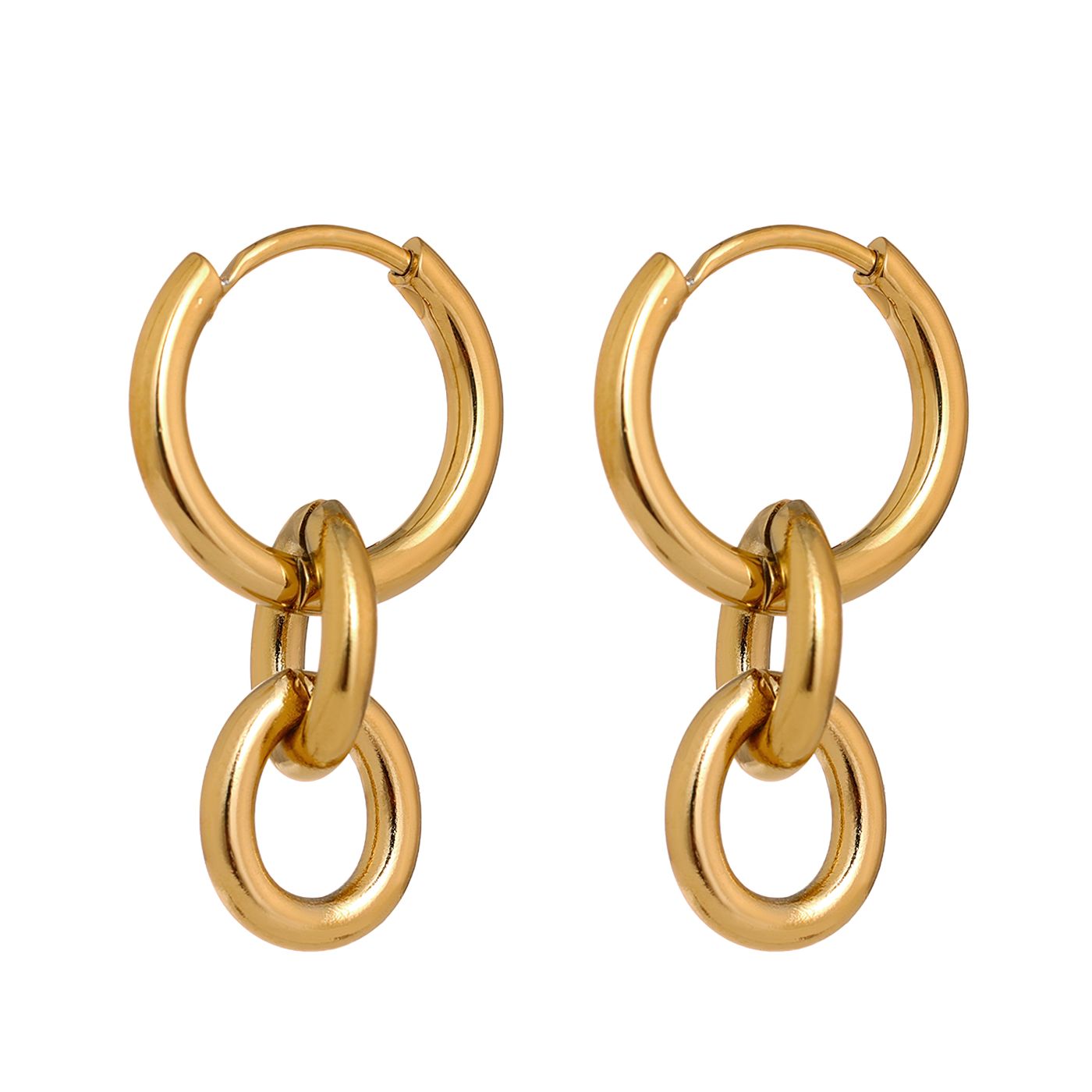 Earrings crafted from stainless steel with 18k gold plating. Featuring a design of interconnected circular links, imparting a modern and sophisticated style. Secured with a click closure.